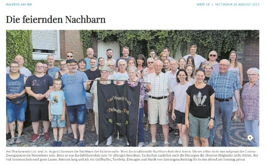 Darum haben wir am 13/14. August 2022 mit allen Nachbarn der Eichenstrasse-West den 70. Geburtstag unserer Nachbarschaft ordentlich gefeiert.